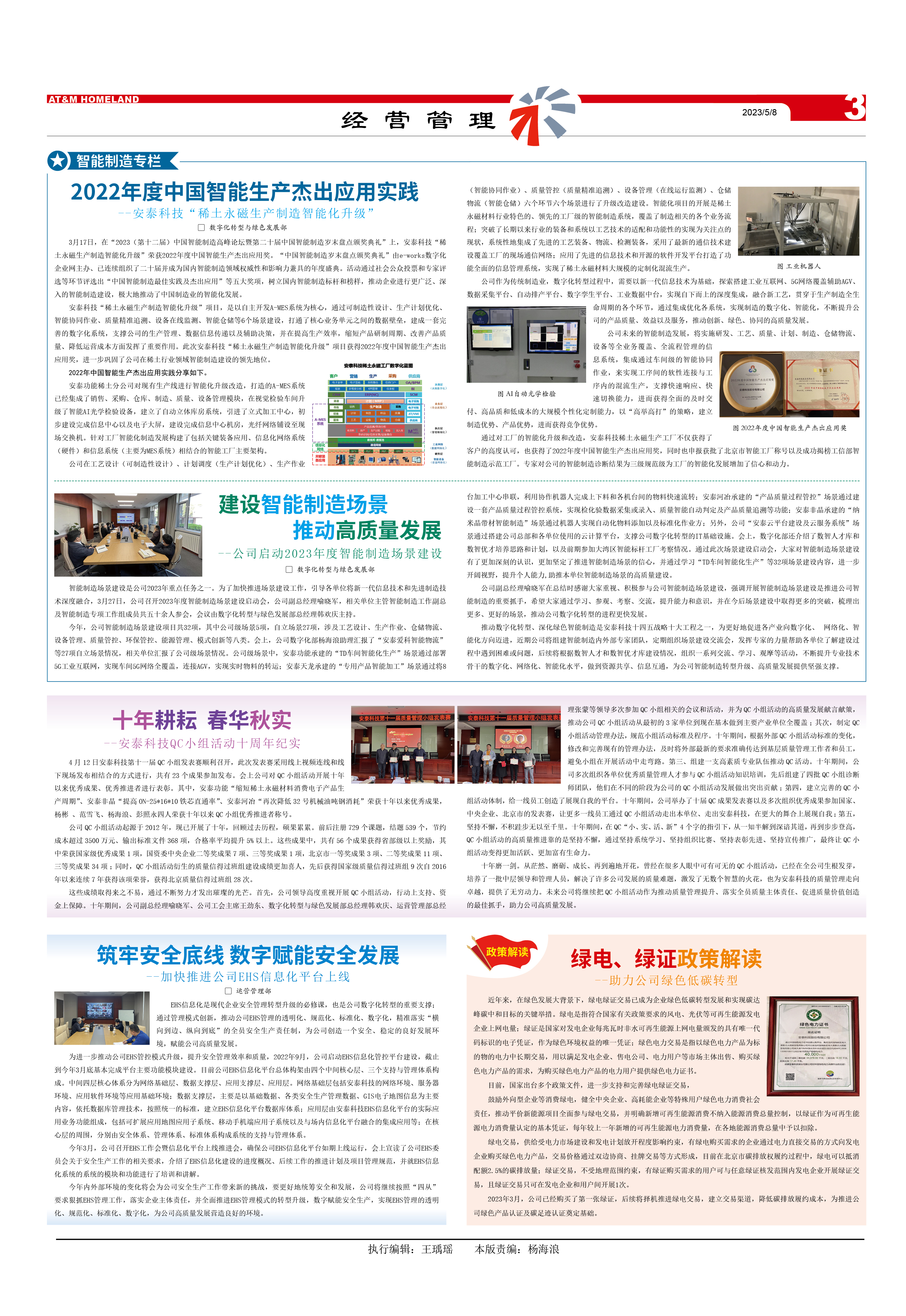 3月17日,在“2023(第十二屆)中國智能制造高峰論壇暨第二十屆中國智能制造歲末盤點頒獎典禮”上,安泰科技“稀土永磁生產制造智能化升級”榮獲2022年度中國智能生產杰出應用獎。“中國智能制造歲末盤點頒獎典禮”由e-works數(shù)字化企業(yè)網(wǎng)主辦、已連續(xù)組織了二十屆并成為國內智能制造領域權威性和影響力兼具的年度盛典。活動通過社會公眾投票和專家評選等環(huán)節(jié)評選出“中國智能制造最佳實踐及杰出應用”等五大獎項,樹立國內智能制造標桿和榜樣,推動企業(yè)進行更廣泛、深入的智能制造建設,極大地推動了中國制造業(yè)的智能化發(fā)展。