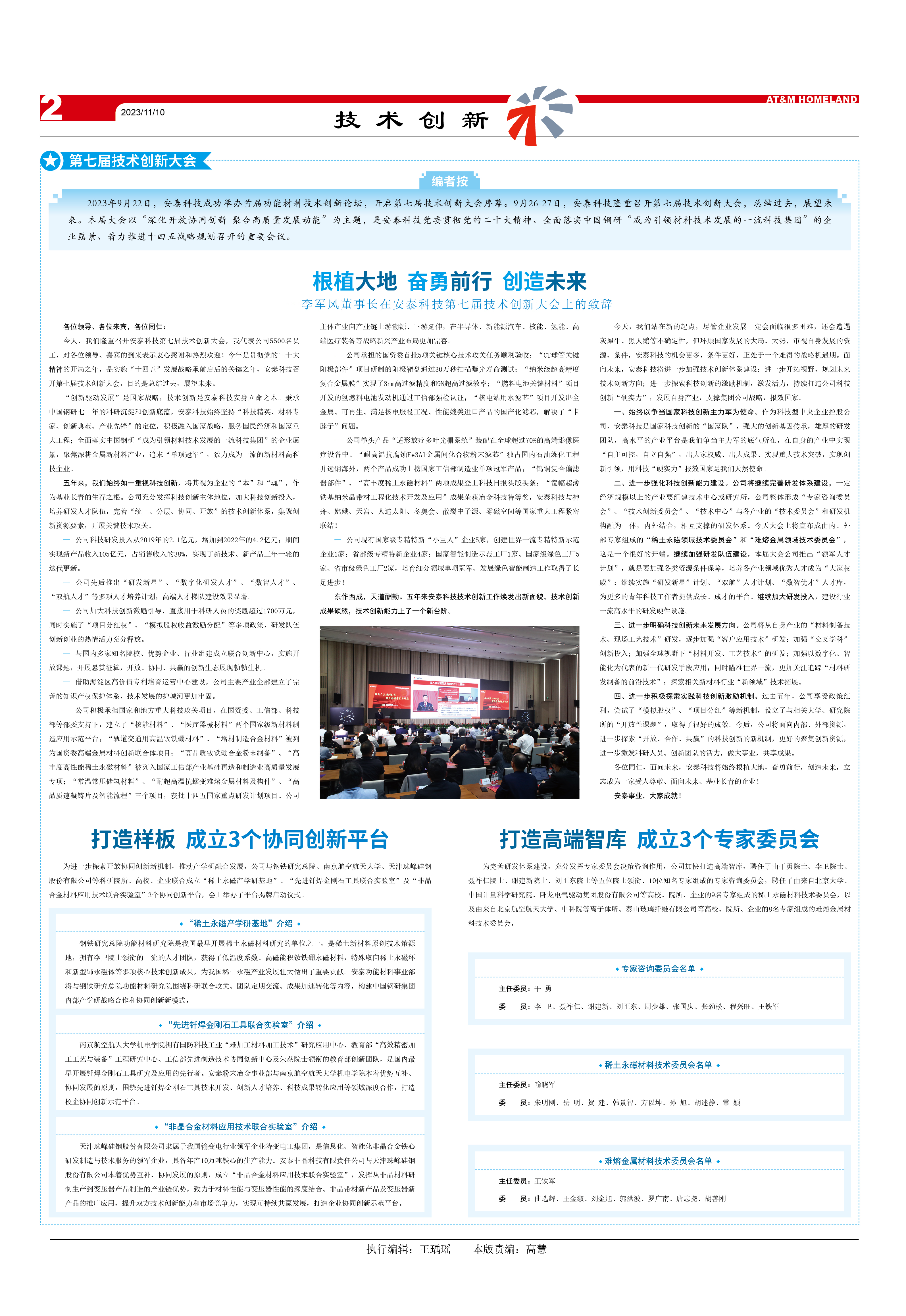 2023年9月22日,安泰科技成功舉辦首屆功能材料技術創(chuàng)新論壇,開啟第七屆技術創(chuàng)新大會序幕。9月26-27日,安泰科技隆重召開第七屆技術創(chuàng)新大會,總結過去,展望未來。本屆大會以“深化開放協同創(chuàng)新 聚合高質量發(fā)展動能”為主題,是安泰科技黨委貫徹黨的二十大精神、全面落實中國鋼研“成為引領材料技術發(fā)展的一流科技集團”的企業(yè)愿景、著力推進十四五戰(zhàn)略規(guī)劃召開的重要會議。