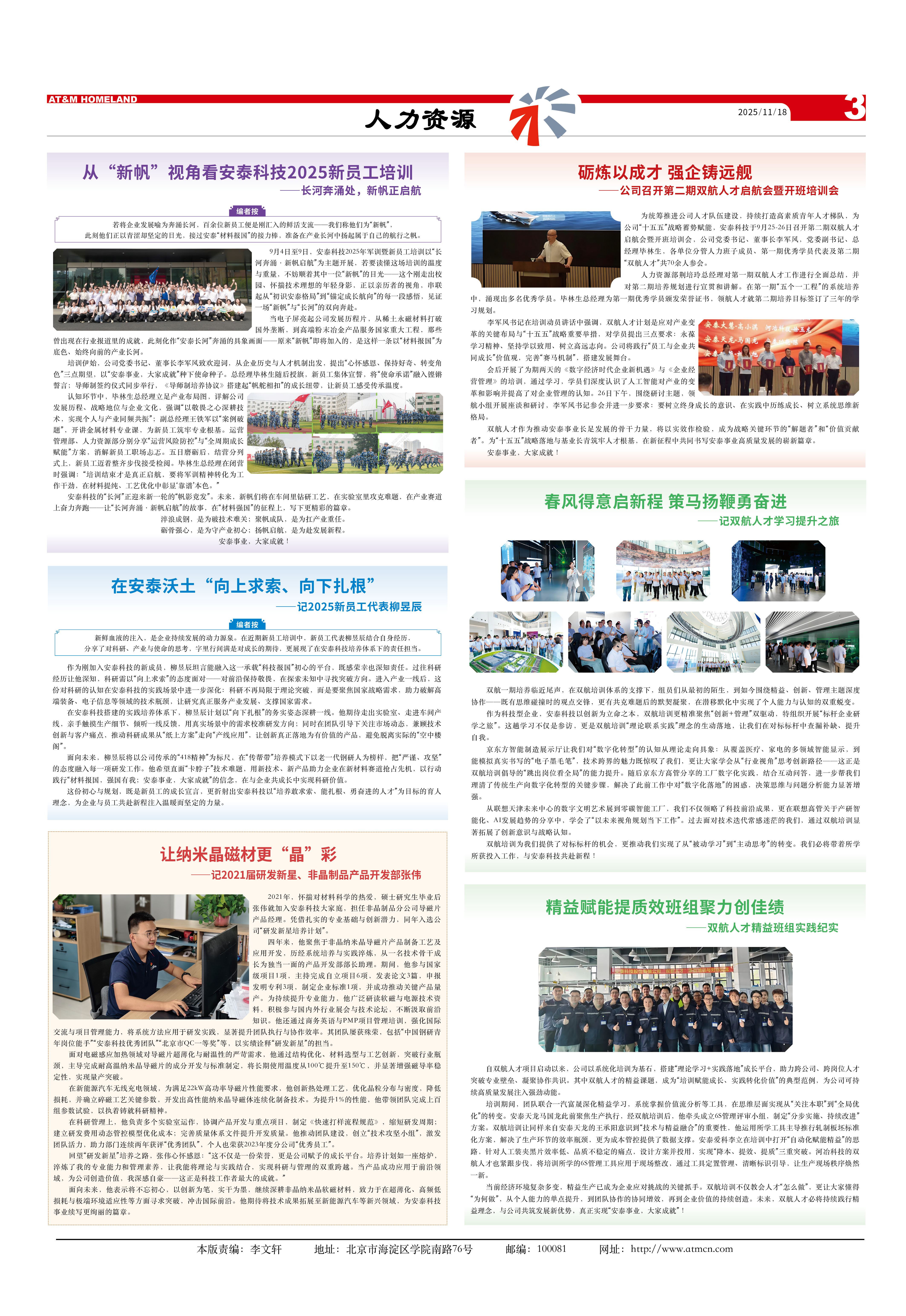編者按:若將企業(yè)發(fā)展喻為奔涌長河,百余位新員工便是剛匯入的鮮活支流——我們稱他們?yōu)椤靶路保丝趟麄冋郧酀瓍s堅定的目光,接過安泰“材料報國”的接力棒,準備在產(chǎn)業(yè)長河中揚起屬于自己的航行之帆。