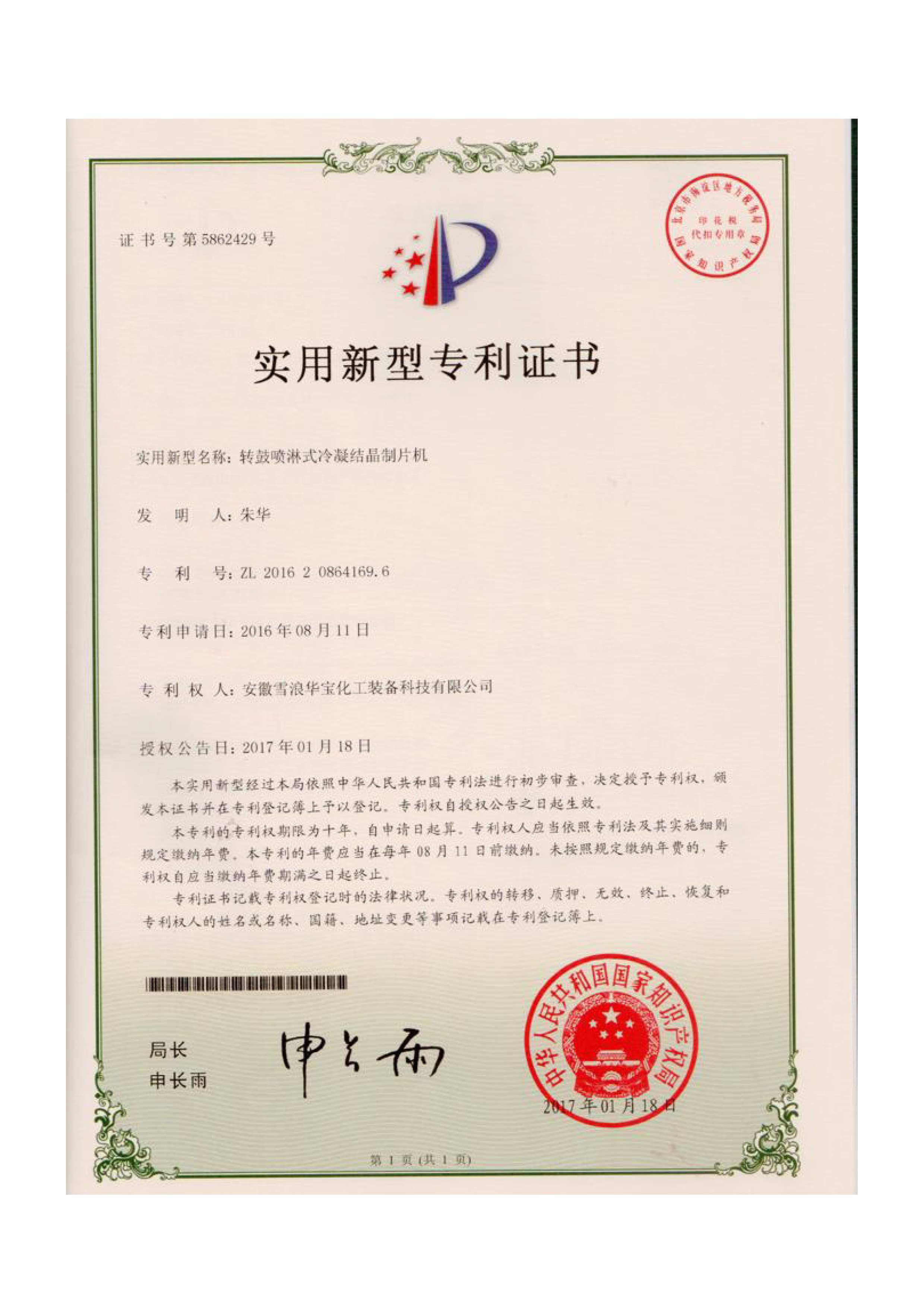 實用新型專利證書